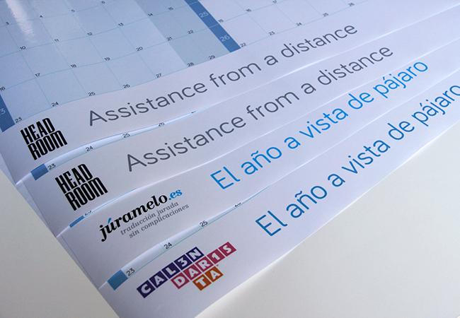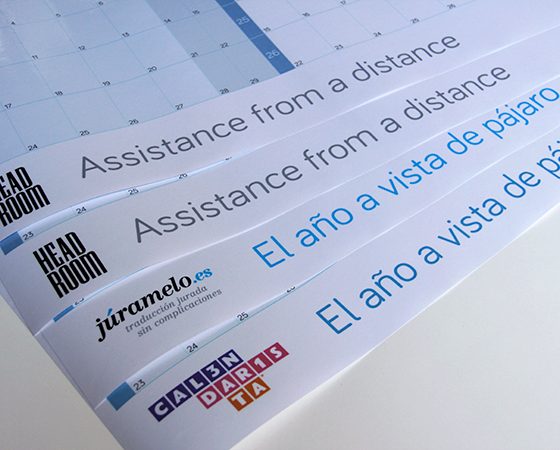 • Sustituimos el logo de Calendarista por logotipo de tu empresa  en cualquiera de nuestros productos, cambiamos el color a tu color corporativo y, además, podemos sustituir el eslogan «El año a vista de pájaro» por el de tu empresa o alguna frase inspiradora.